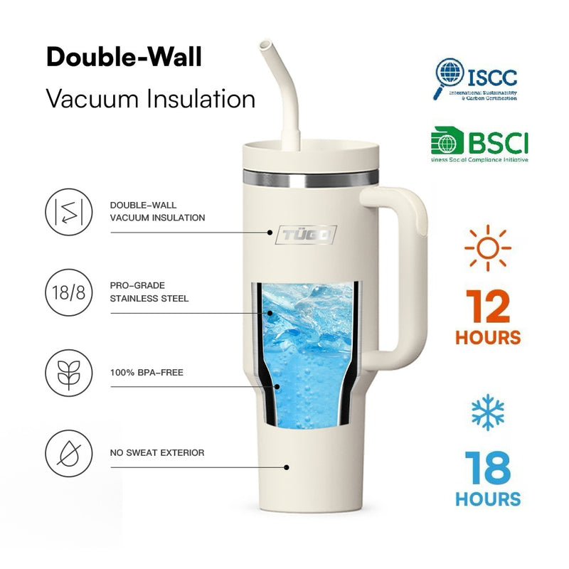 Stay refreshed anywhere — TÜGO keeps your drinks cold for 24 hours or hot for 12.